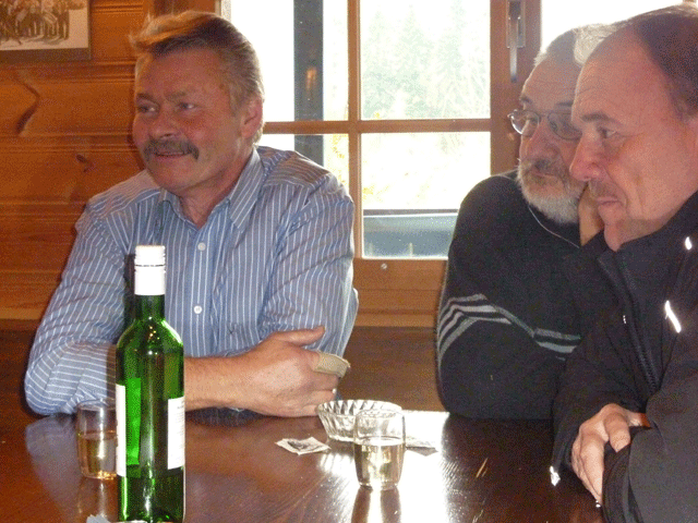 Wo mir zrugg gsi si hani dr Philippe dähäi usglade, dr Erwin und der Heinz bim Babsi undä, und mir si zum Schützehuus ufägfahrä.